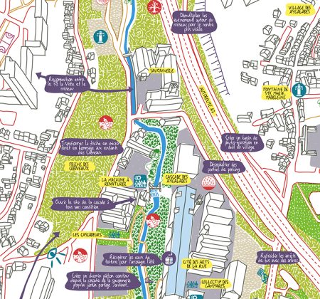 Je suis artiste et paysagiste de formation. La marche et la cartographie sensible sont pour moi des outils de connaissance de notre environnement, de notre société, des vecteurs d’imaginaires et d’histoires collectives. Je conçois et fabrique des interventions artistiques contextuelles, dessine des cartes, des carnets de voyage, organise des ateliers pédagogiques et participatifs. En m’inspirant toujours de ce que raconte le lieu. En allant à la rencontre de ceux qui l’habitent. En mettant en avant ce qui est déjà là. En tissant des liens. En multipliant les points de vue.