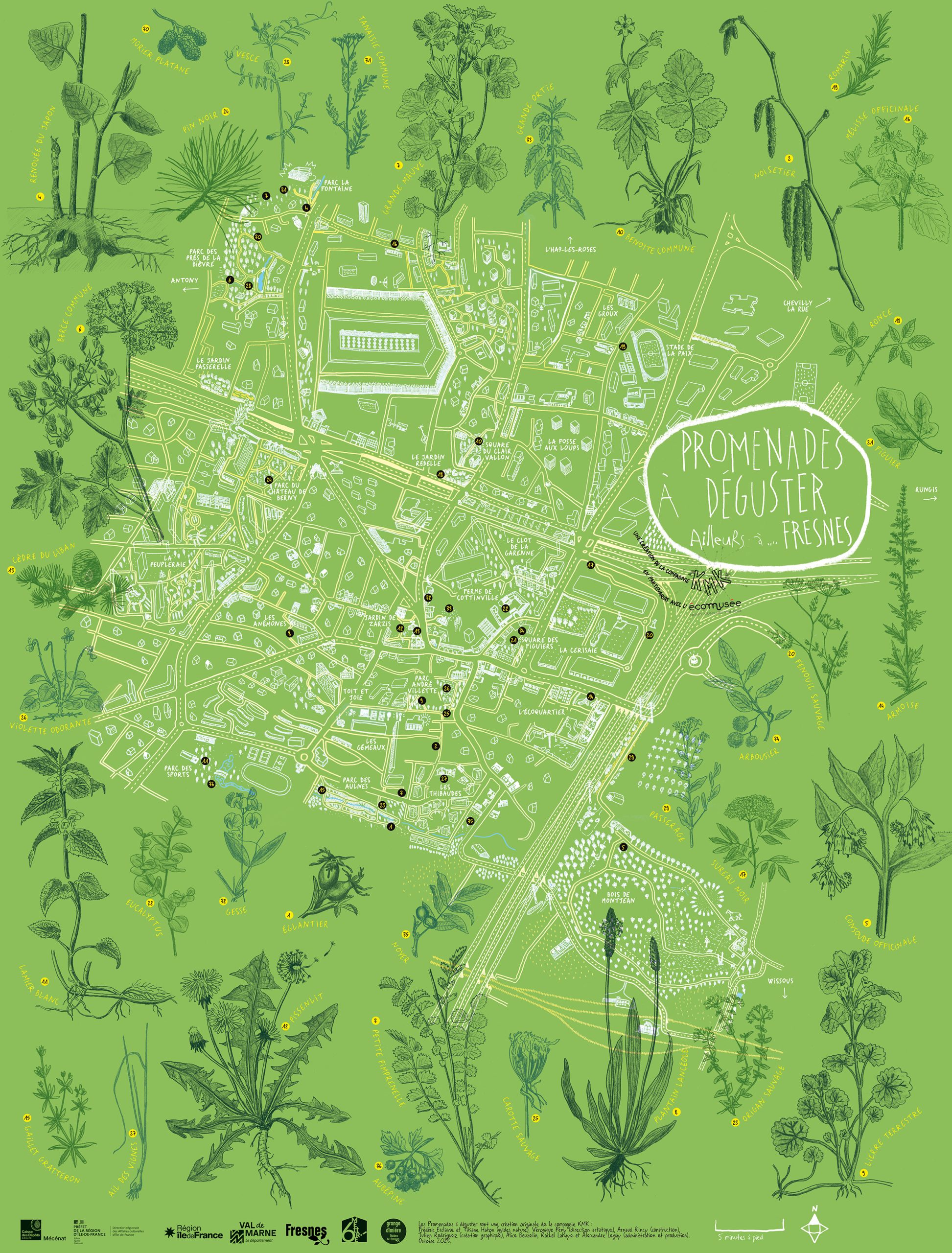Conçue comme un grand poster, la carte mêle approche botanique, lecture du paysage et dimension graphique. Elle peut être utilisée comme support pédagogique, point de départ de balades urbaines ou objet à afficher, pour garder une trace sensible et accessible de la richesse végétale de Fresnes.